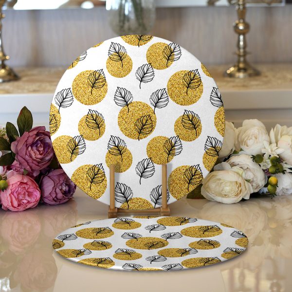 Realhomes Beyaz Zemin Üzerinde Gold Puantiyeli Yaprak Desenli 2’li Yuvarlak Servis Altlığı – Supla