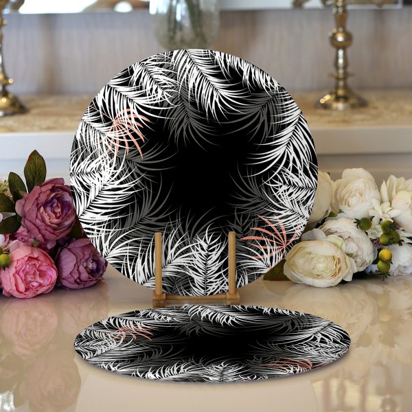 Realhomes Siyah Zemin Üzerinde Yaprak Desenli Dijital Baskılı Modern 2’li Yuvarlak Servis Altlığı – Supla