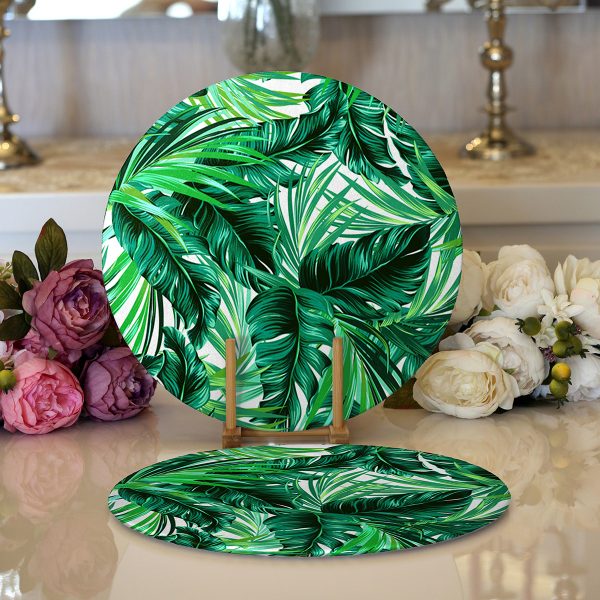 Realhomes Pastel Zemin Üzerinde Yaprak Desenli Dijital Baskılı Modern 2’li Yuvarlak Servis Altlığı – Supla