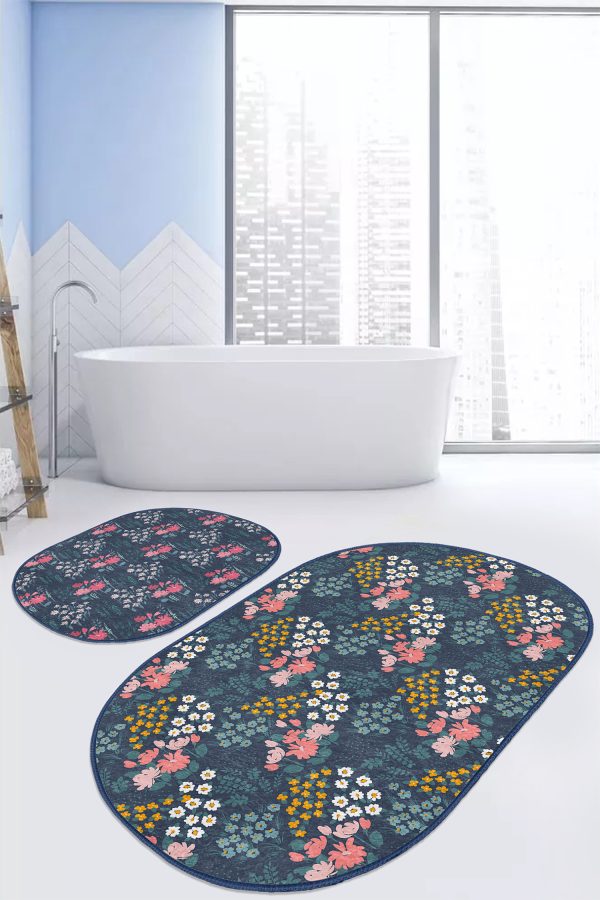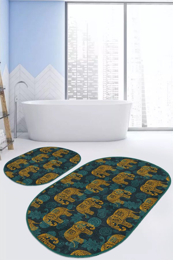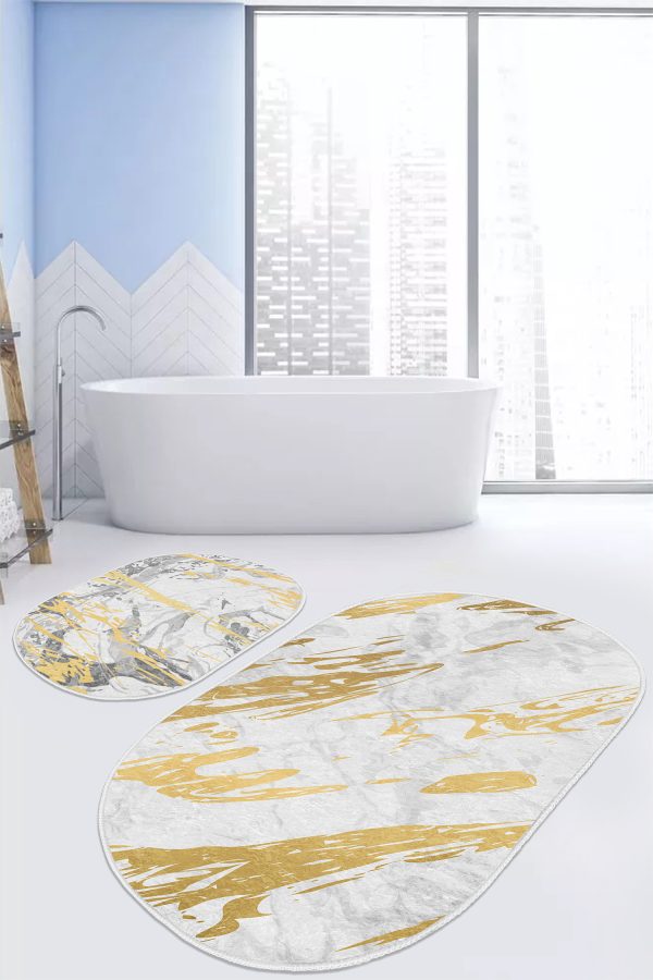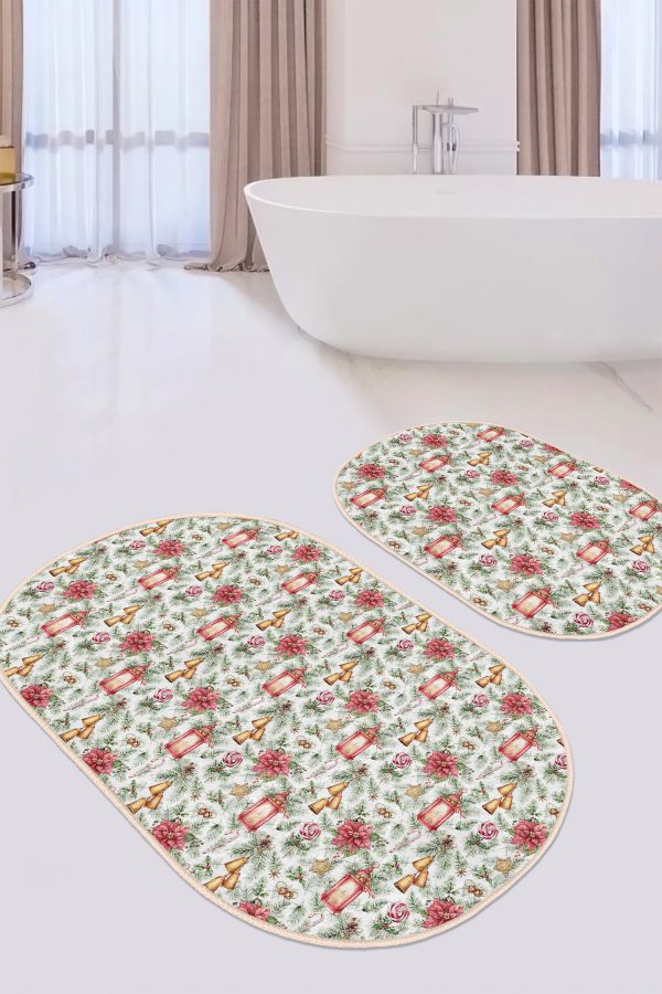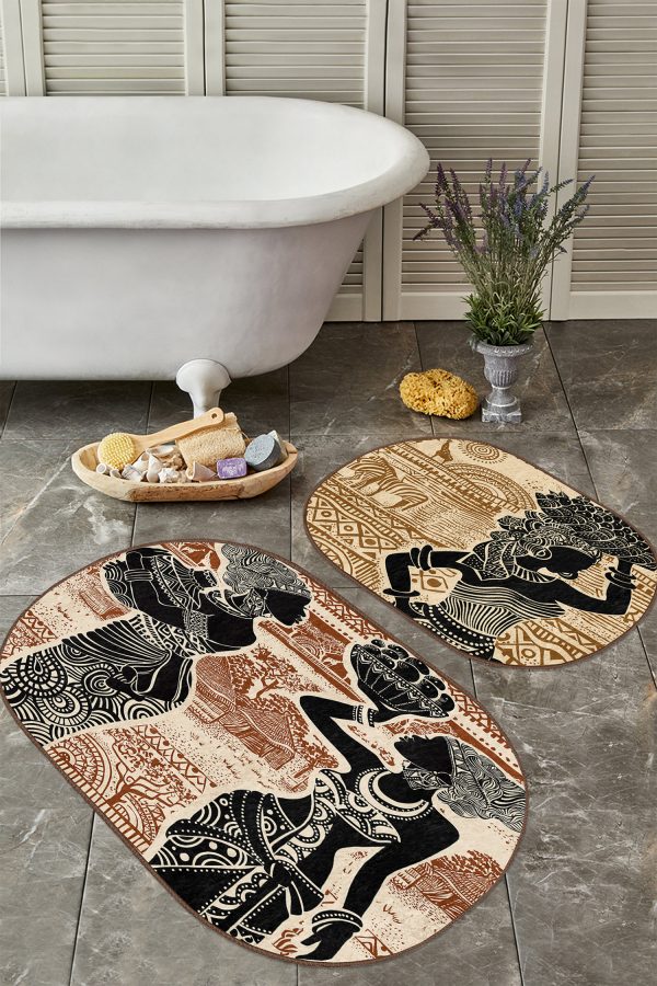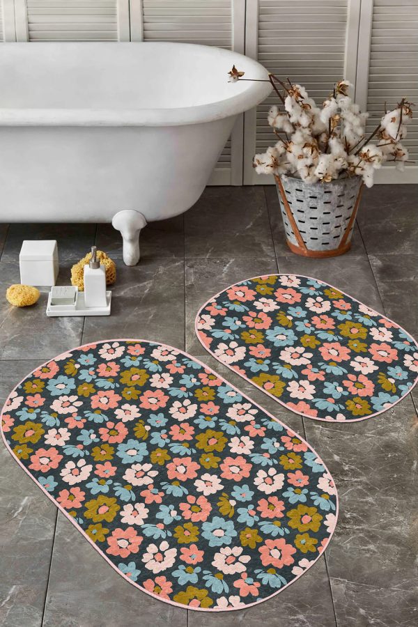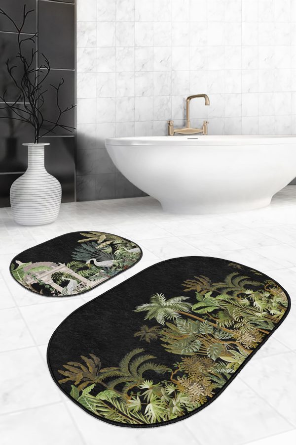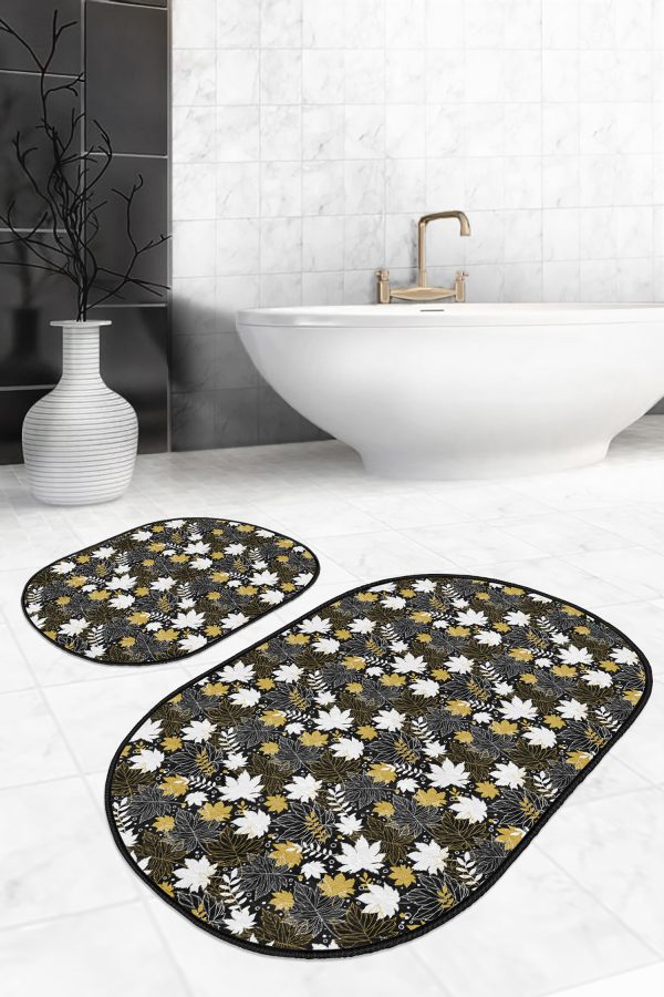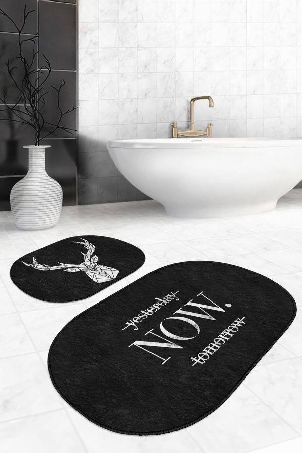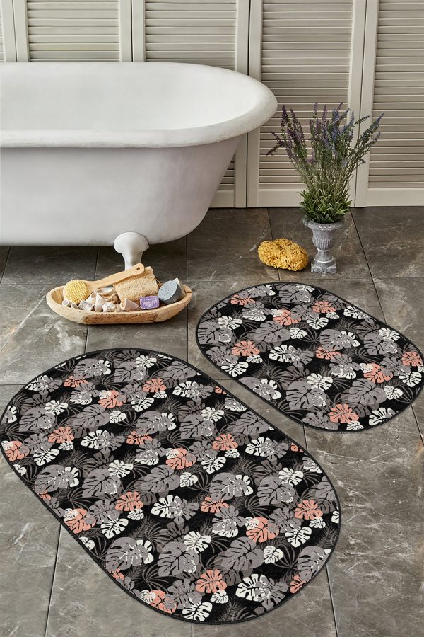 Siyah Beyaz Ekose Motifli 2’li Oval Kaymaz Tabanlı Mutfak Paspas Takımı