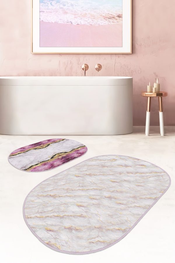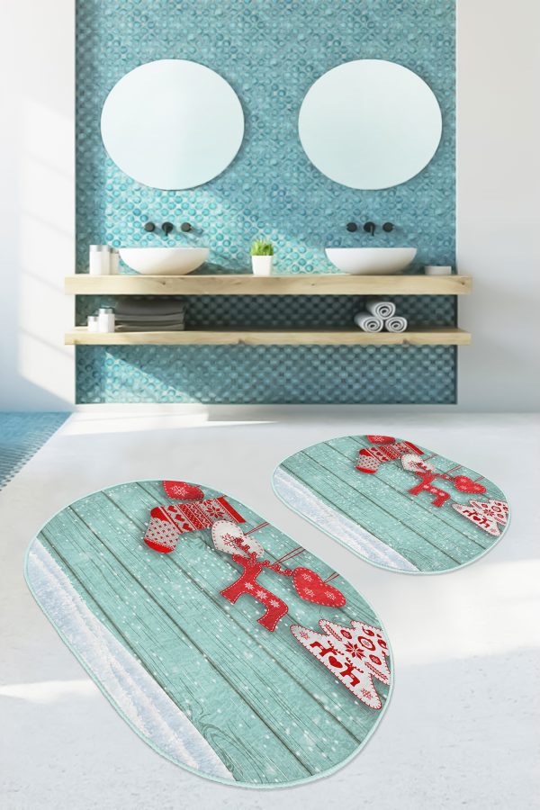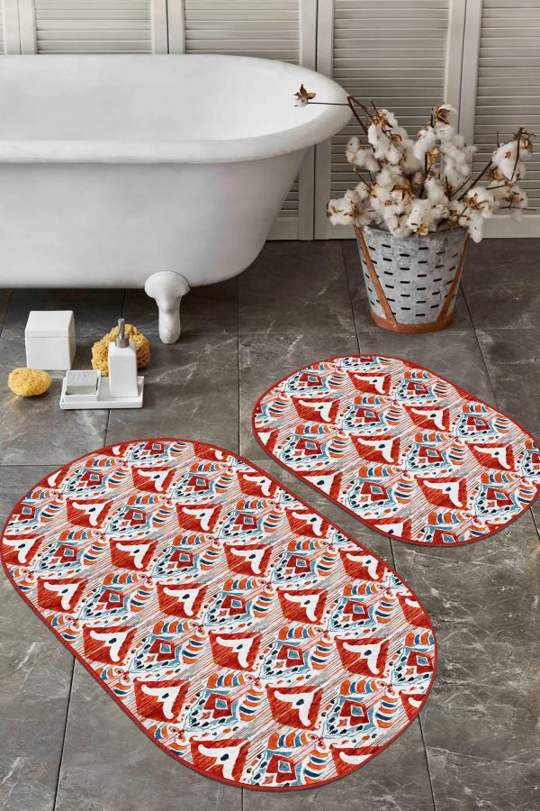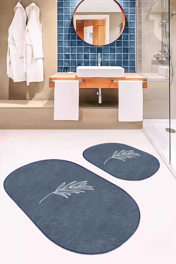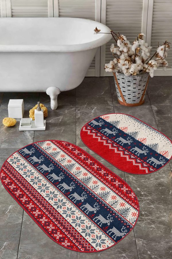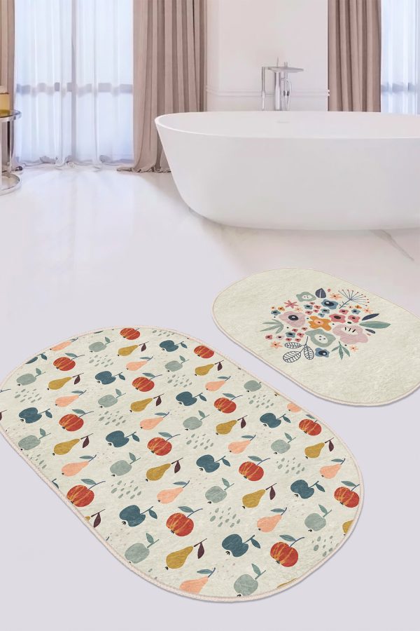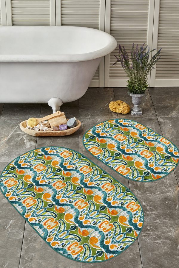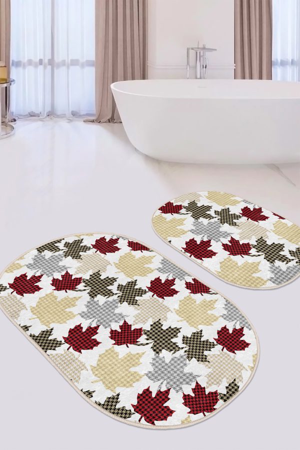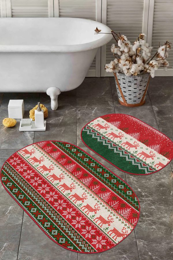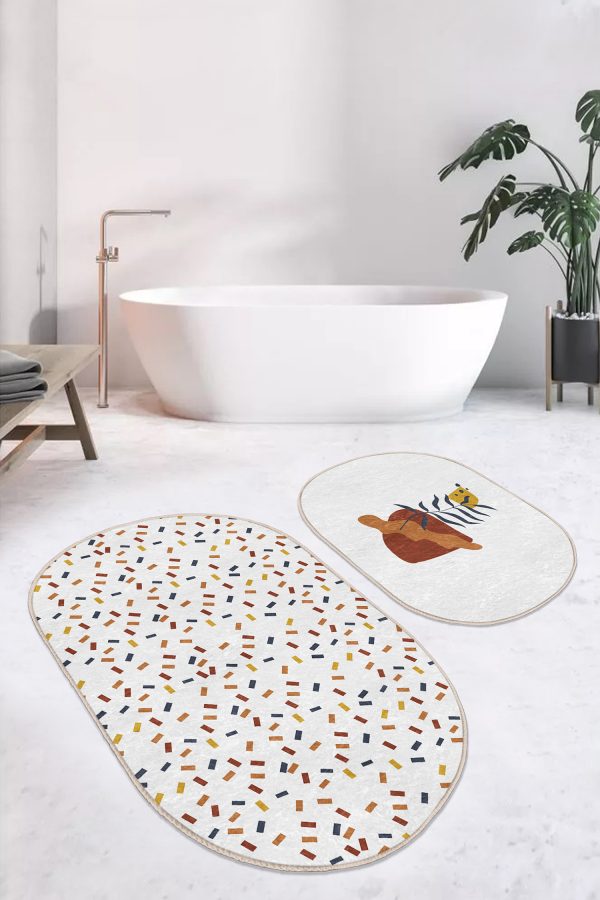 Siyah Beyaz Ekose Motifli 2’li Oval Kaymaz Tabanlı Mutfak Paspas Takımı