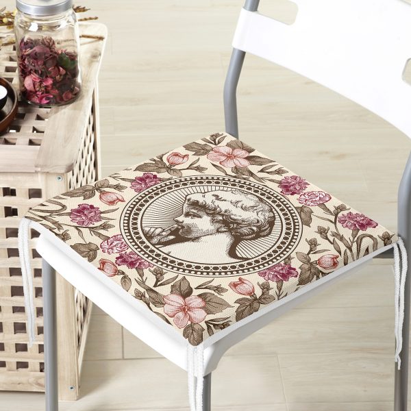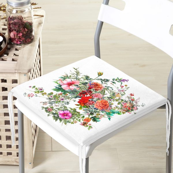 Renkli Çiçek Portre Motifli Dijital Baskılı Fermuarlı Sandalye Minderi