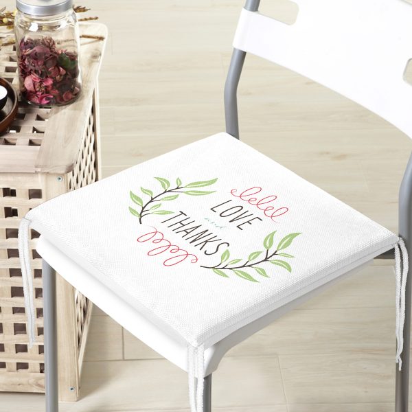 Love And Thanks Yaprak Desenli Dijital Baskılı Fermuarlı Sandalye Minderi
