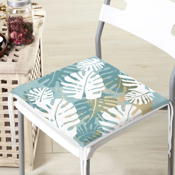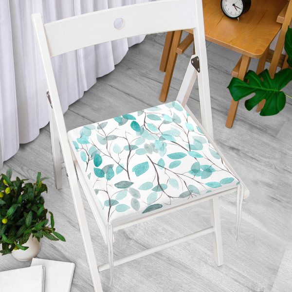 Mavi Zemin Yapraklı Tasarım Desenli Dijital Baskılı Fermuarlı Sandalye Minderi