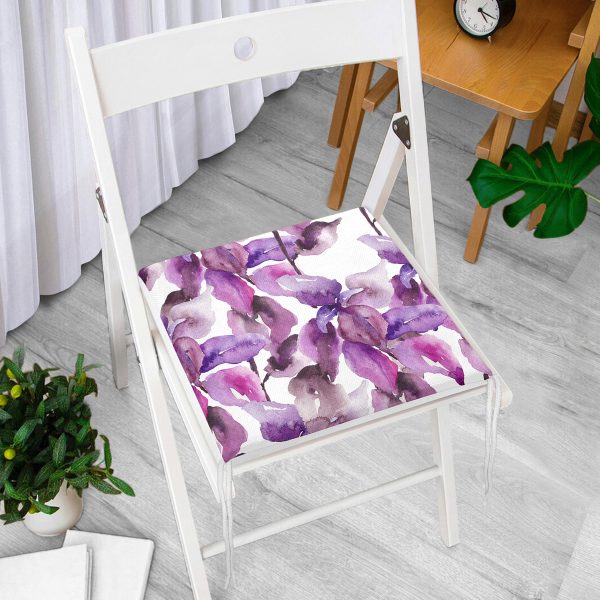 Sulu Boya Yaprak Temalı Dijital Baskılı Modern Fermuarlı Sandalye Minderi
