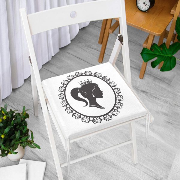 Siyah Beyaz Bayan Resimli Dijital Fermuarlı Sandalye Minderi