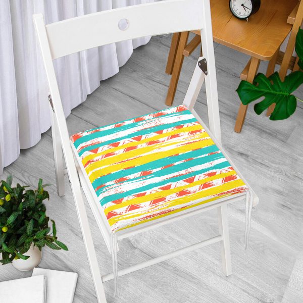 Renkli Geometrik Desenler Temalı Fermuarlı Sandalye Minderi