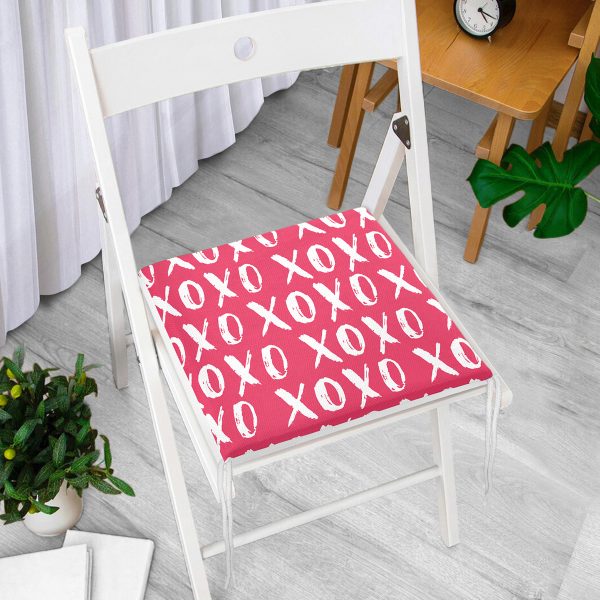 Pembe Zeminde XOX Özel Tasarımlı Dijital Baskılı Modern Fermuarlı Sandalye Minderi