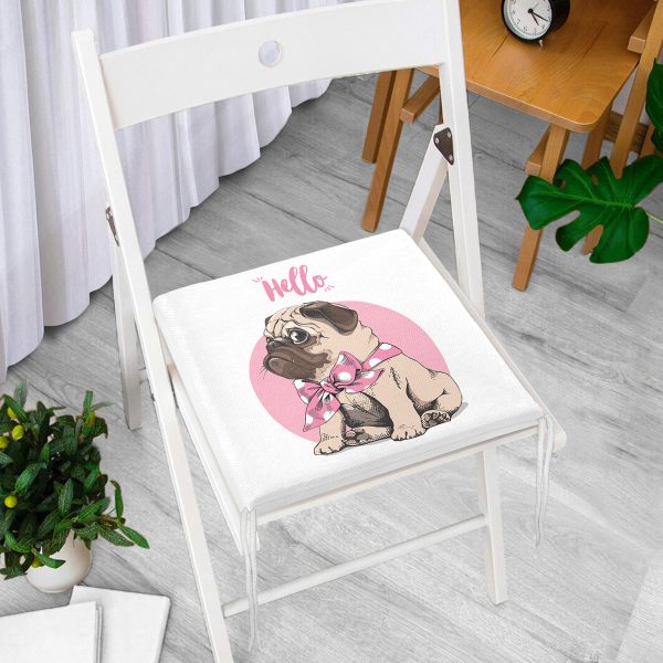Hello Sevimli Köpek Dijital Baskılı Modern Fermuarlı Sandalye Minderi