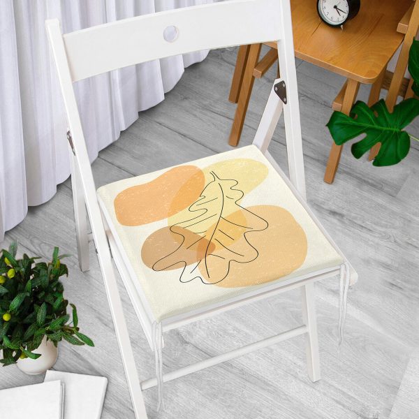 Renkli Zeminde Onedraw Çizimli Yaprak Desenli Dijital Baskılı Modern Fermuarlı Sandalye Minderi