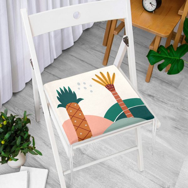 Renkli Zeminli Palmiye Desenli Dijital Baskılı Modern Fermuarlı Sandalye Minderi