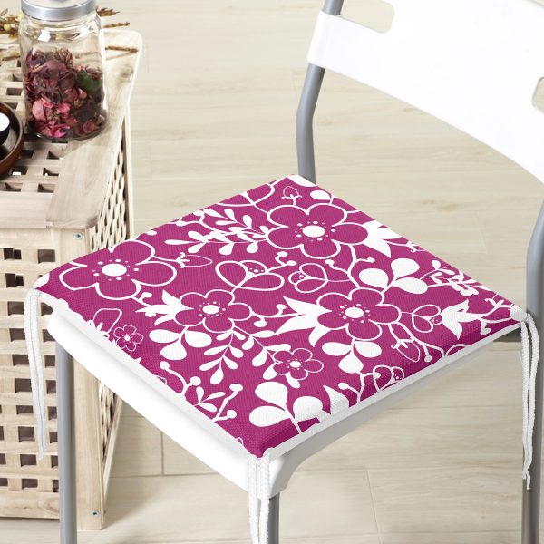 Beyaz Zemin Üzerinde Çiçek Desenli Dijital Baskılı Modern Fermuarlı Sandalye Minderi