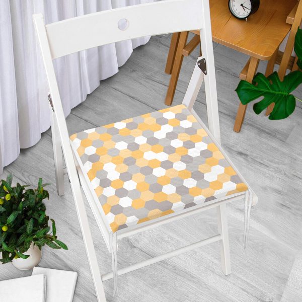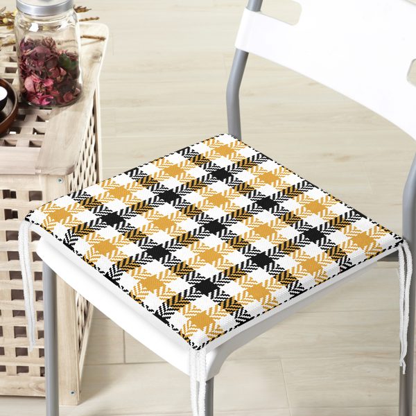 Beyaz Zemin Üzerinde Siyah Sarı Ekose Desenli Dijital Baskılı Modern Fermuarlı Sandalye Minderi