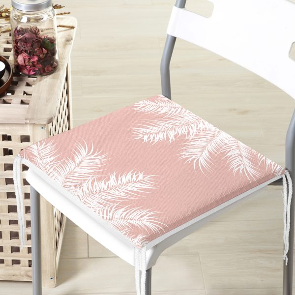 Pastel Zemin Üzerinde Beyaz Yaprak Desenli Dijital Baskılı Modern Fermuarlı Sandalye Minderi