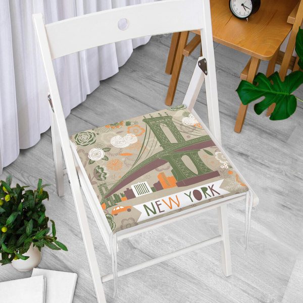 New York Temalı Dijital Baskılı Fermuarlı Sandalye Minderi