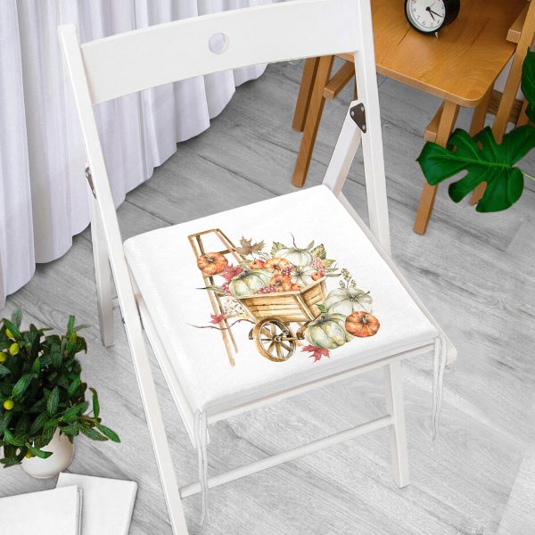 Beyaz Zemin Üzerinde Balkabağı Desenli Dijital Baskılı Modern Fermuarlı Sandalye Minderi