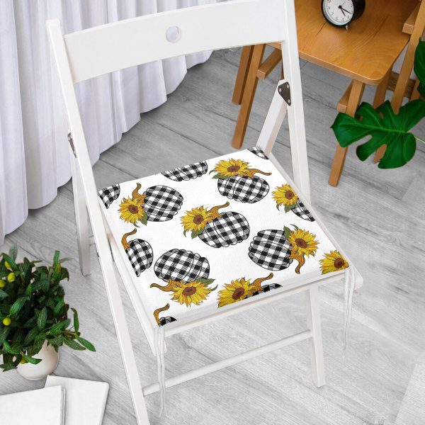 Beyaz Zemin Üzerinde Ekose Desenli Bal Kabağı Motifli Dijital Baskılı Modern Fermuarlı Sandalye Minderi