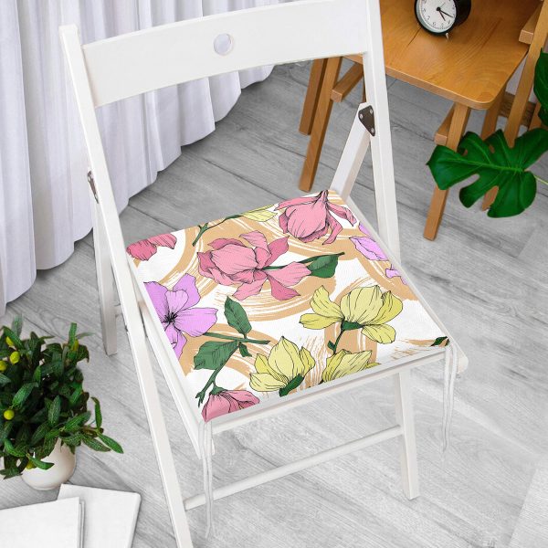 Renkli Zemin Üzerinde Çiçek Desenli Dijital Baskılı Modern Fermuarlı Sandalye Minderi