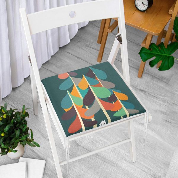 İllüstrasyon Ağaç Ve Ev Figürlü Özel Tasarım Dijital Baskılı Modern Fermuarlı Sandalye Minderi