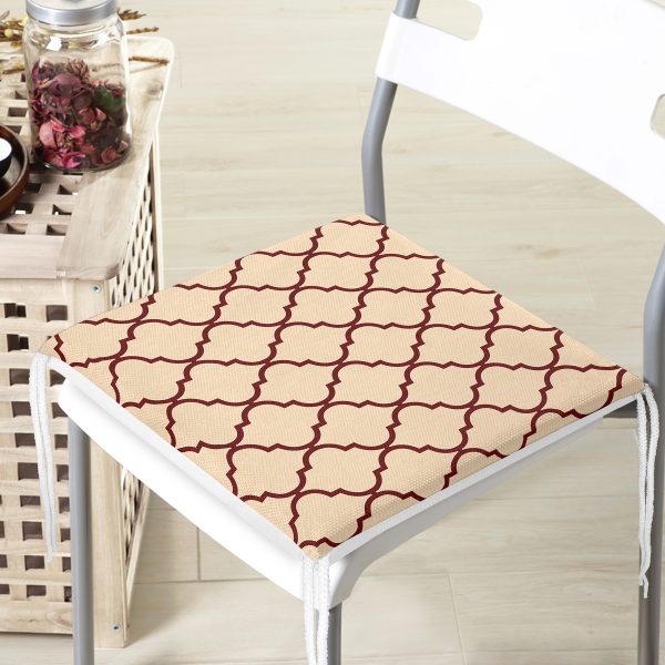 Krem Zemin Kahve Ogea Motifli Fermuarlı Sandalye Minderi