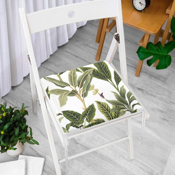 Yeşil Tropik Yaprak Motifli Modern Fermuarlı Sandalye Minderi