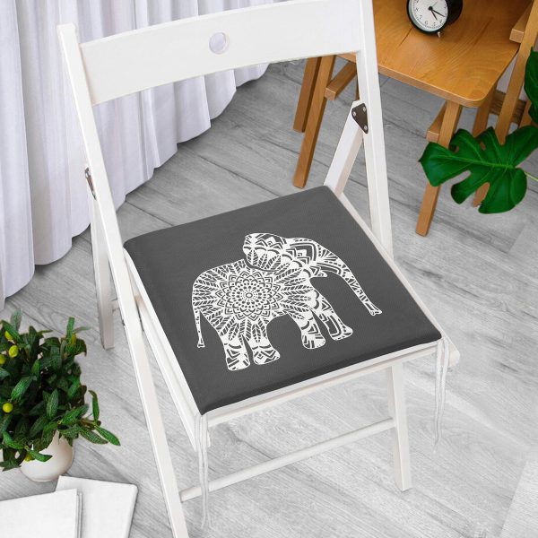 Koyu Füme Zemin Etnik Fil Motifli Fermuarlı Sandalye Minderi