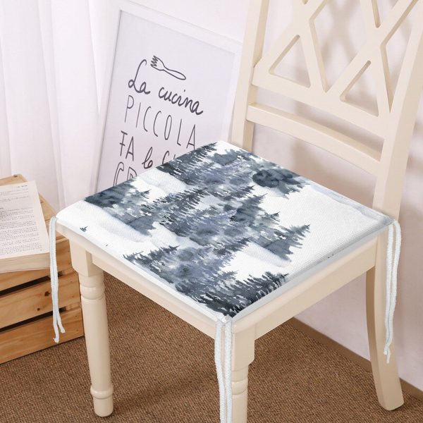 Suluboya Çizimli Kış Temalı Çam Ağaçları Dijital Baskılı Fermuarlı Sandalye Minderi