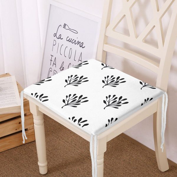 Beyaz Zemin Üzerinde Siyah Yaprak Desenli Dijital Baskılı Modern Fermuarlı Sandalye Minderi