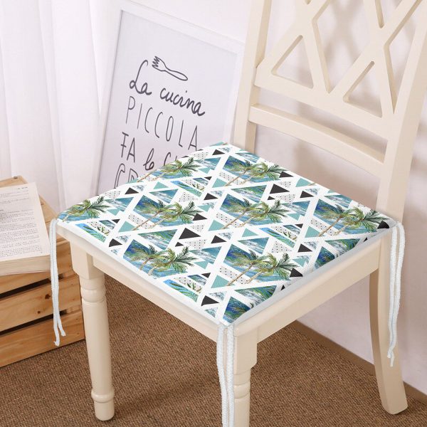 Mavi Geometrik Palmiye Desenleri Fermuarlı Sandalye Minderi