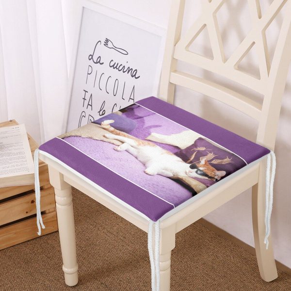 Gözlüklü Kedi Desenli Dijital Baskılı Modern Fermuarlı Sandalye Minderi