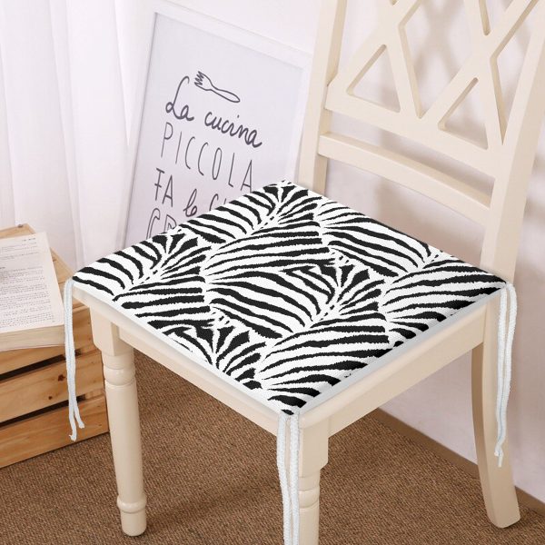 Renkli Zemin Üzerinde Siyah Zebra Motifli Dijital Baskılı Modern Fermuarlı Sandalye Minderi