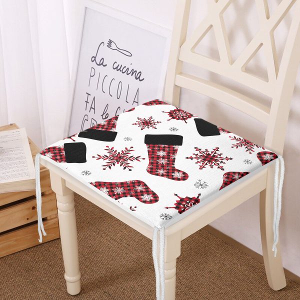 Beyaz Zemin Üzerinde Ekoseli Kar tanesi Desenli Dijital Baskılı Modern Fermuarlı Sandalye Minderi