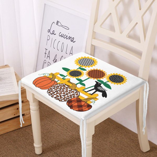 Beyaz Zemin Üzerinde Ayçiçek Desenli Ekoseli Balkabağı Dijital Baskılı Modern Fermuarlı Sandalye Minderi