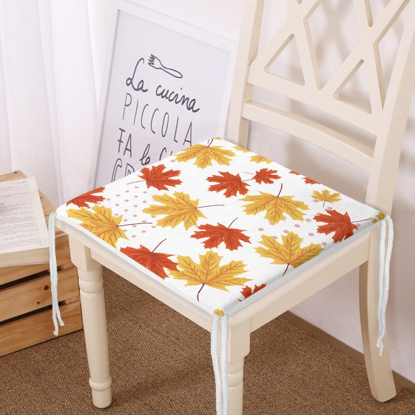 Beyaz Zemin Üzerinde Sonbahar Yaprak Desenli Dijital Baskılı Modern Fermuarlı Sandalye Minderi