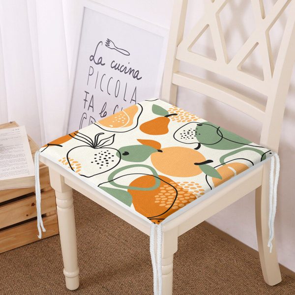 Renkli Zemin Üzerinde Onedraw Çizimli Meyve Desenli Dijital Baskılı Modern Fermuarlı Sandalye Minderi