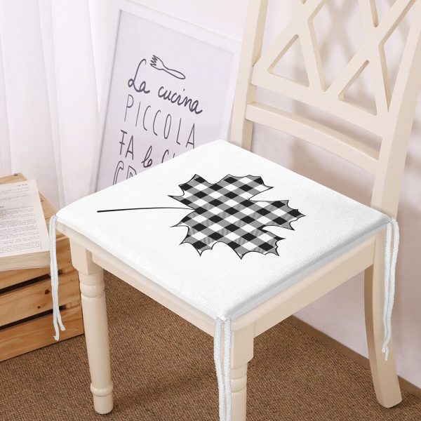 Siyah Beyaz Yaprak Motifli Fermuarlı Sandalye Minderi