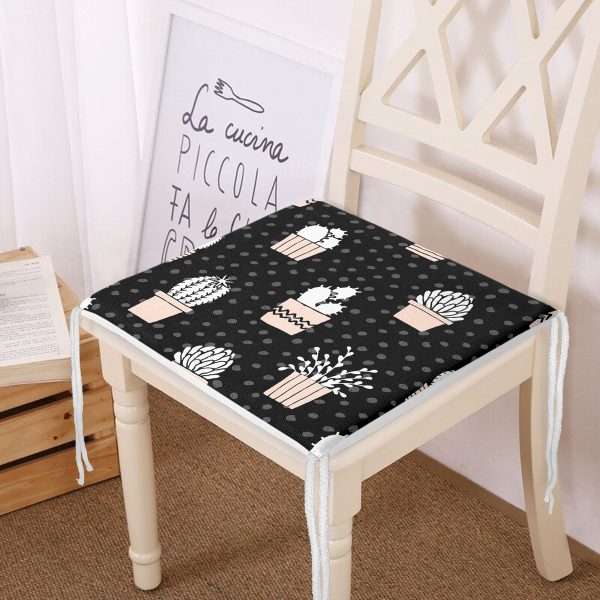 Siyah Zemin Üzerinde Kaktüs Desenli Dijital Baskılı Modern Fermuarlı Sandalye Minderi