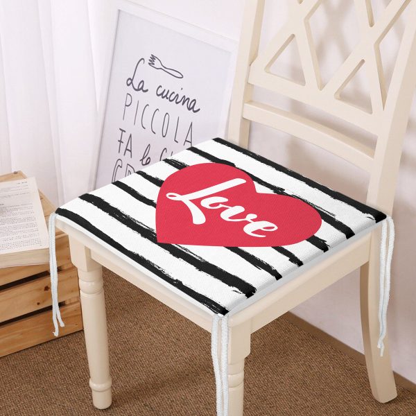 Sevgililer Günü Temalı Özel Tasarım Dijital Baskılı Modern Fermuarlı Sandalye Minderi