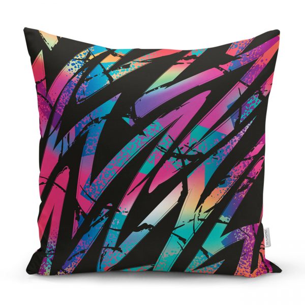 Siyah Zemin Üzerinde Neon Zigzag Desenli Dekoratif Kırlent Kılıfı