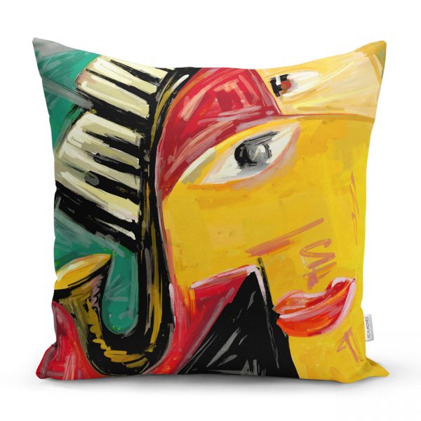 Müzik Temalı Soyut Kadın Motifli Kırlent Kılıfı