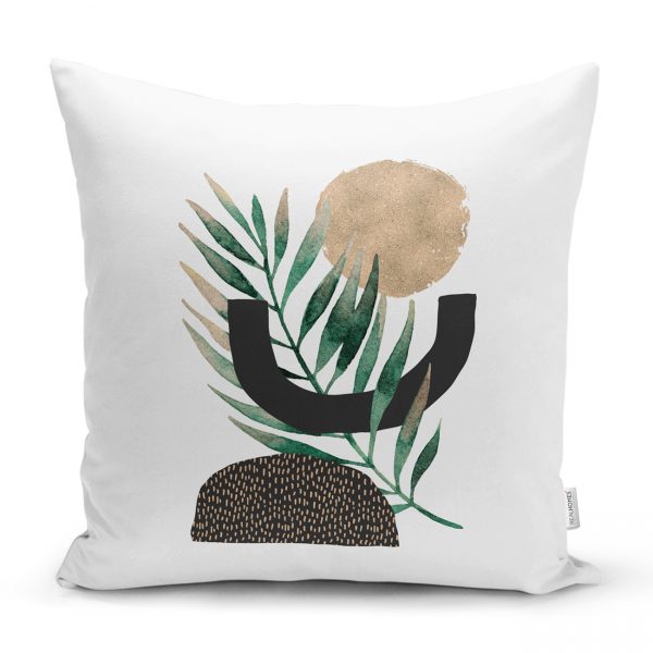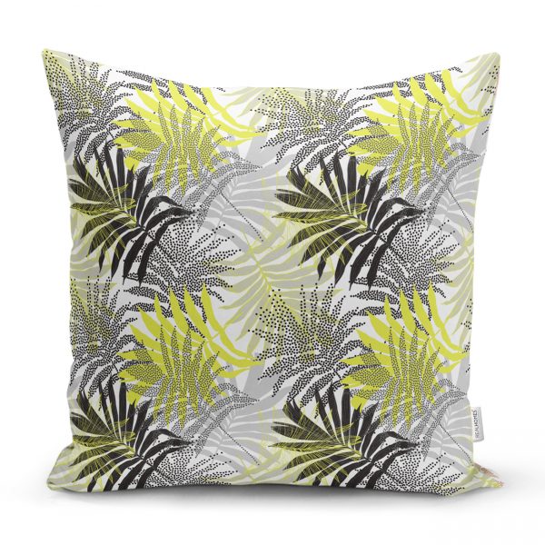 RealHomes Tropik Yaprak Motifli Dekoratif Dijital Baskılı Kırlent Kılıfı