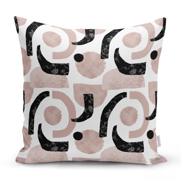 Beyaz Zeminde Soyut Geometrik Çizim Motifli Kırlent Kılıfı