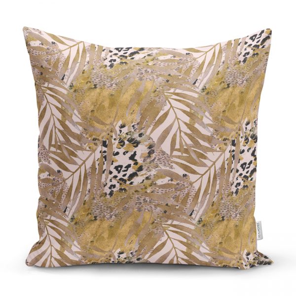 Leopar Temalı Kuru Yaprak Desenli Dijital Baskılı Kırlent Kılıfı