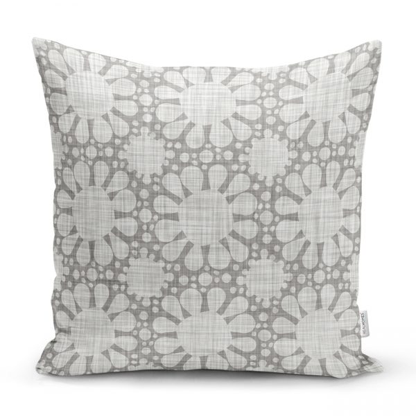 Gri Kot Desenli Güneş Motifli Dekoratif Modern Kırlent Kılıfı