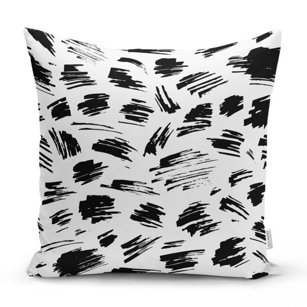Beyaz Zeminde Anlamsız Çizgiler Motifli Kırlent Kılıfı