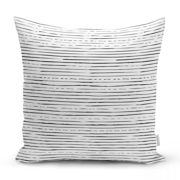Modern Siyah Beyaz Çizgi Motifli Dekoratif Kırlent Kılıfı