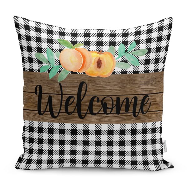Siyah Beyaz Ekose Welcome Temalı Modern Yastık Kırlent Kılıfı