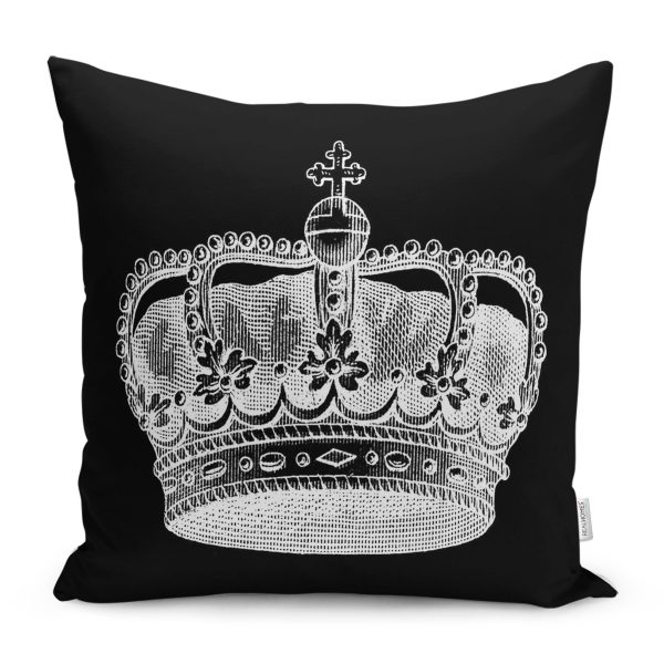 Siyah Beyaz Kral Tacı Özel Tasarımlı Modern Yastık Kırlent Kılıfı