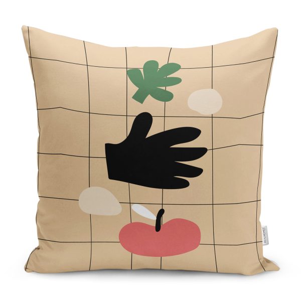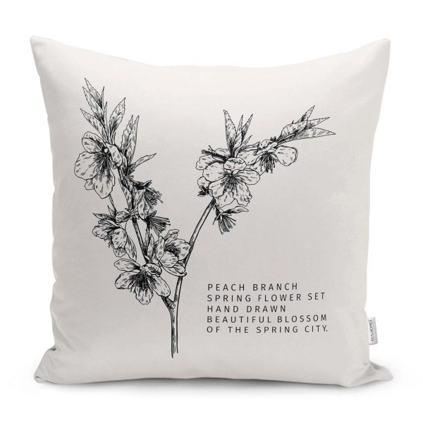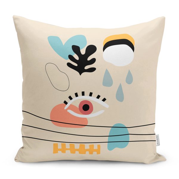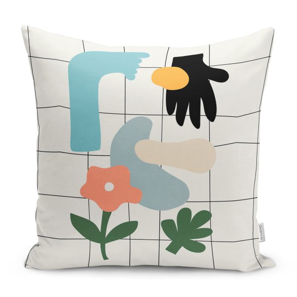 Krem Zemin Onedraw Temalı Dekoratif Yastık Kırlent Kılıfı