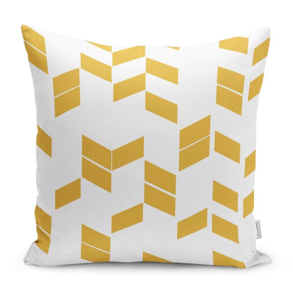 Sarı Geometrik Çizimli Dekoratif Yastık Kırlent Kılıfı